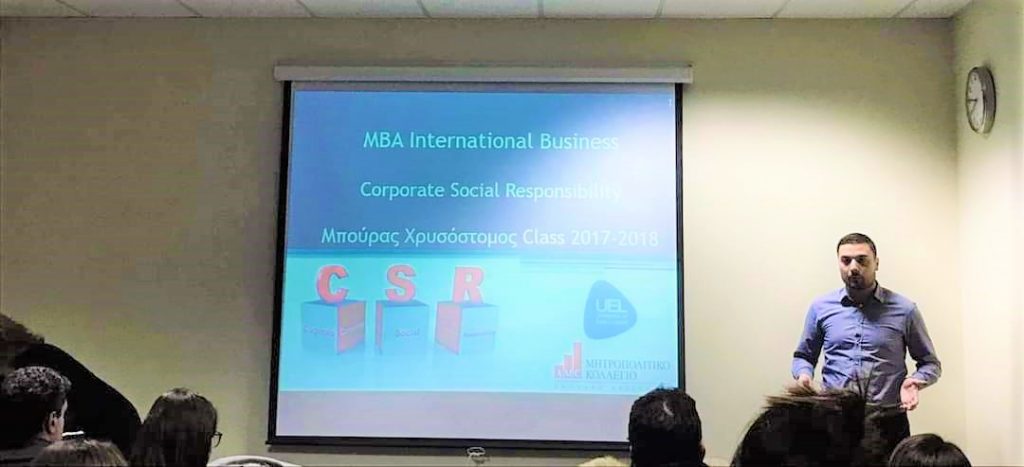 Presentation of Corporate Social Responsibility main principles at MBA International Business students, Athens – 2018